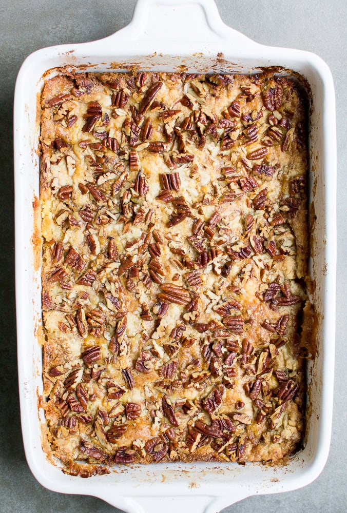 It’s chewy, soft and crunchy. The pecans on top are a MUST.